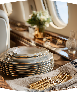 Your cabin should reflect your brand and aesthetic. We curate cohesive collections, from cashmere throws and bespoke leather goods to crystal glassware and custom amenities, balancing beauty, functionality, and quality within your aircraft's design language.